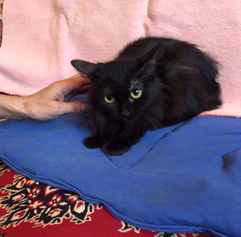 Новосибирск, Бердск. Есть на пристрой приютская кошечка-подросток. Угольно-чёрная пушистая шерсть, пронзительные глазки, миниатюрная и изящная. Ей всего 6 месяцев, ходит в лоточек. Считается, что Агата дичок. Попав котенком в приют (плодильщики постарались), слабый детский организм подцепил вирус, справился, но страх этого места и недоверие к людям остались. А корректировать поведение и социализировать Агату в переполненном приюте, понятно, некому. Она совершенно не агрессивна, не царапается, не шипит. Но ужасно всего боится. Если взять ее на руки, она будет послушно сидеть-бояться, не убежит, не покусает и не подерет.