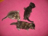 Появились на свет 20-го января в ночь просмотра "Игры престолов", и потому названы Дайенерис (девочка Дая, спокойная и справедливая, окрас черепаховый), Дракарис (самый шебутной и заводной мальчик, окрас тигровый) и Дрого (цепкий и быстрый, окрас тёмный шоколад).