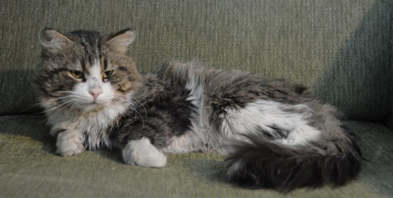 Возраст котика - не больше двух лет. Он кастрирован, приучен к лотку и хорошему сухому корму.