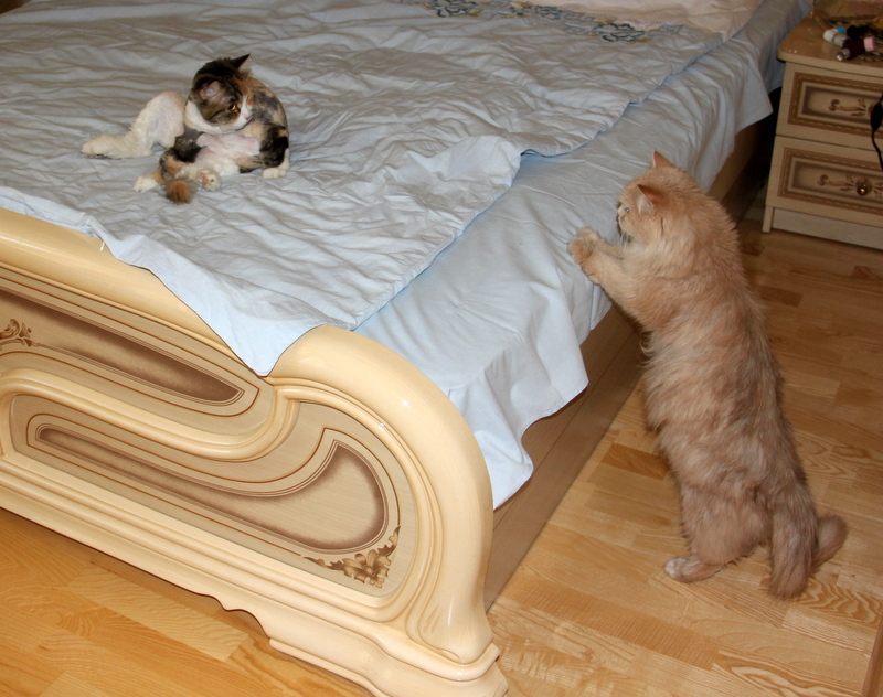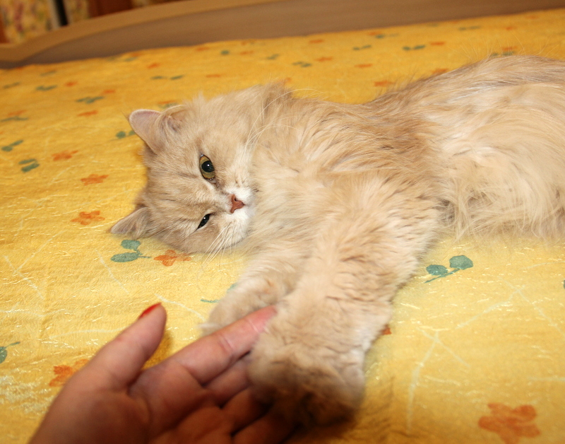 Маша невероятно ласковая, если на неё не обращаешь внимание, она очень тактично подходит и трогает тебя лапкой: погладьте, пожалуйста, будьте так любезны.