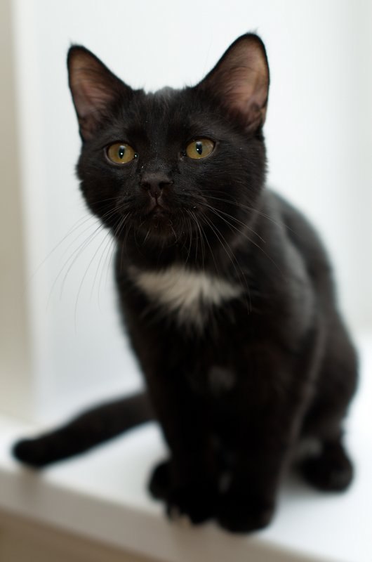 Ищем дом вот такому юному франту с очевидным именем Черныш! Сейчас ему 5 месяцев. Котенок здоров, неприхотлив в еде и безошибочно попадает в лоток (с любым наполнителем). С другими кошками отлично, будет только рад товарищу по играм. Бесстрашный, активный, ласковый, общительный, мега-позитивный парень, никого и ничего не боится и готов носиться целый день, но! при этом любит сидеть на руках и мурчать.
