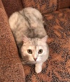 Даша очень крупная, мягкая, плюшевая девочка мраморного окраса, с короткими ушками – во внешности явственно проскальзывает помесь с шотландской породой. С очень располагающим, ориентированным на человека характером. Это ласковая, милая и нежная мурлыкушка, совершенно не капризная и беспроблемная. Будучи плюшкой, не прочь повеселиться-поиграть. С сородичами конфликтна, поэтому лучше, если Даша будет у вас единственной домашней любимицей. Тогда она раскроется во всей своей кошачьей красе. Здорова, стерильна, лоточек с наполнителем на отлично. Кушает как готовые корма, так и натуральную пищу. Возраст 2 года. Была найдена.