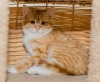 Девочка солнечного рыжего окраса по характеру ласковая, трогательная и скромная кошечка. Она деликатна, не избалована, общительна, но ненавязчива, всегда знает, чем занять себя в отсутствие хозяев.