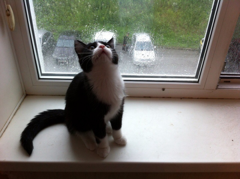 Возраст примерно 2,5 месяца. В поисках лучшей жизни Васятка пришел на обед к сотрудникам одного из офисов в промзоне, безошибочно определил ту, которая неравнодушна к кошкам, и подергал ее за штанину. В остальном котенок оказался не менее умненьким и самостоятельным: в первый же день в квартире пошел в лоток, кушает влажный и сухой корм, уважает сосиски. Активный, шкодливый, бесстрашный. Не боится ни людей, ни котов. Ласковый и ручной, но без излишней навязчивости – умеет сам себя занять. Мурчит громко – вы оцените. Еще совсем малыш, Васятка имеет интересный окрас с эффектом "седины": черная шубка усыпана серебристыми шерстинками. В игре использует коготки и зубы, поэтому в семью с маленькими детьми не подойдет.