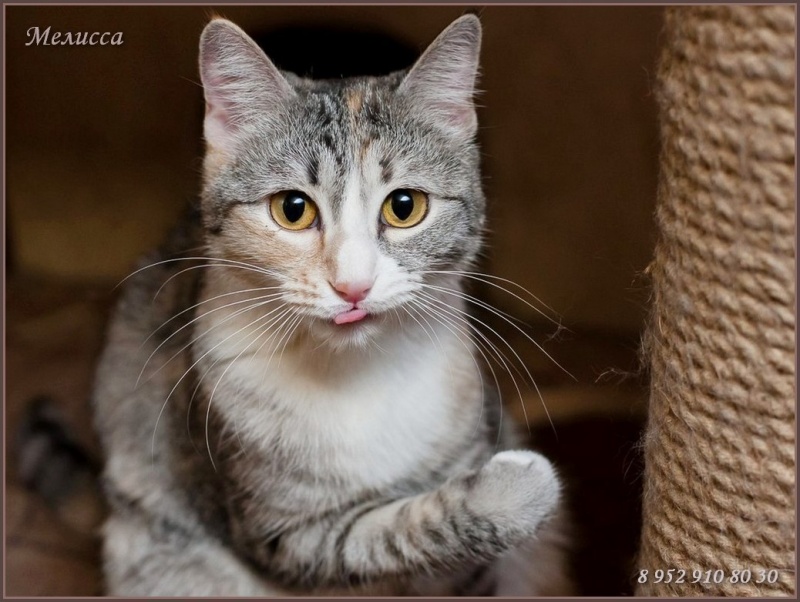 Пристраивается только в квартиру в черте города, с условием в дальнейшем ненавязчиво интересоваться её судьбой. Для знакомства с Мелиссой, звоните: 8-952-910-80-30 Наталья (огромная просьба не звонить позднее 22:00)