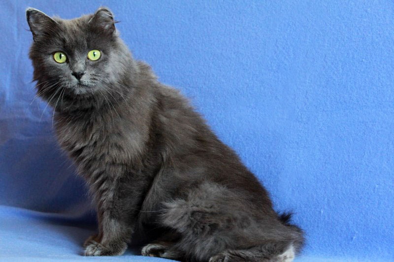 Возраст приблизительно 1-1.5 года. Голубая шубка с серебристым отливом требует постоянного ухода. Линда стерилизована, приучена к лотку с наполнителем, обработана от паразитов. Есть особенность-короткий заячий хвостик.