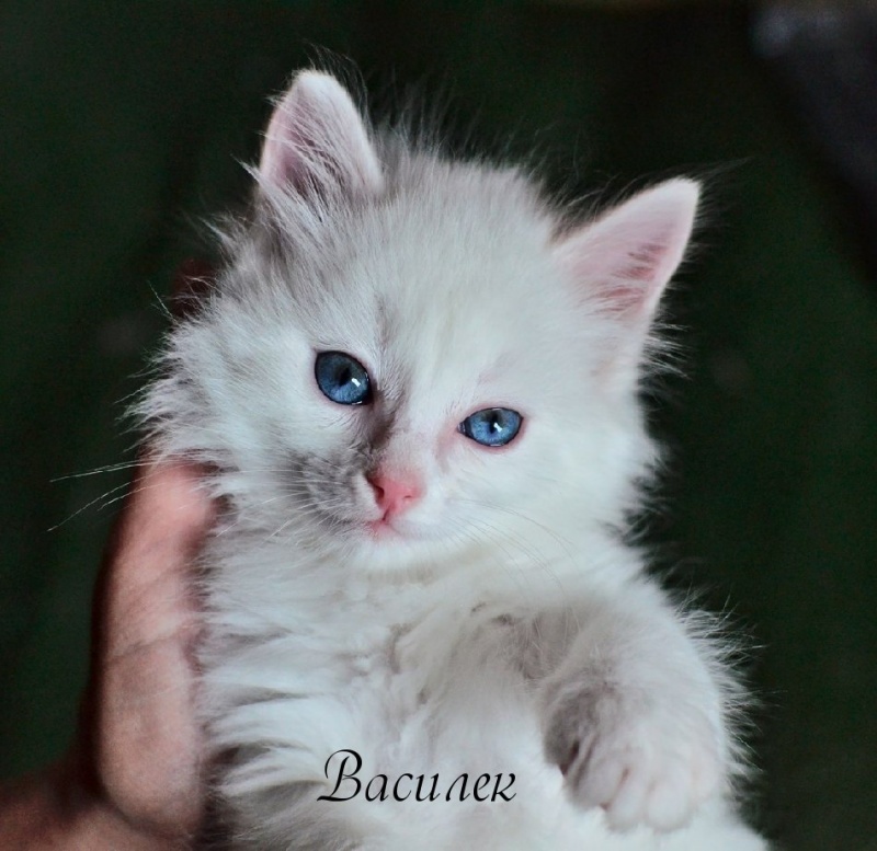Мальчик Василёк - голубоглазый и, увы, глухой. Зато мальчик очень любознательный, игривый, контактный и ласковый, вырастет обаятельным красавцем.