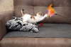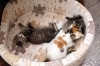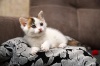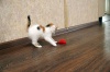 Совсем крошечная, трехцветная куколка, возраст приблизительно 1.5 мес, очень сообразительная, смелая, не из пугливых. Не теряется в новой обстановке,сразу нашла лоточек, миску с едой, стала знакомится с другими кошками.