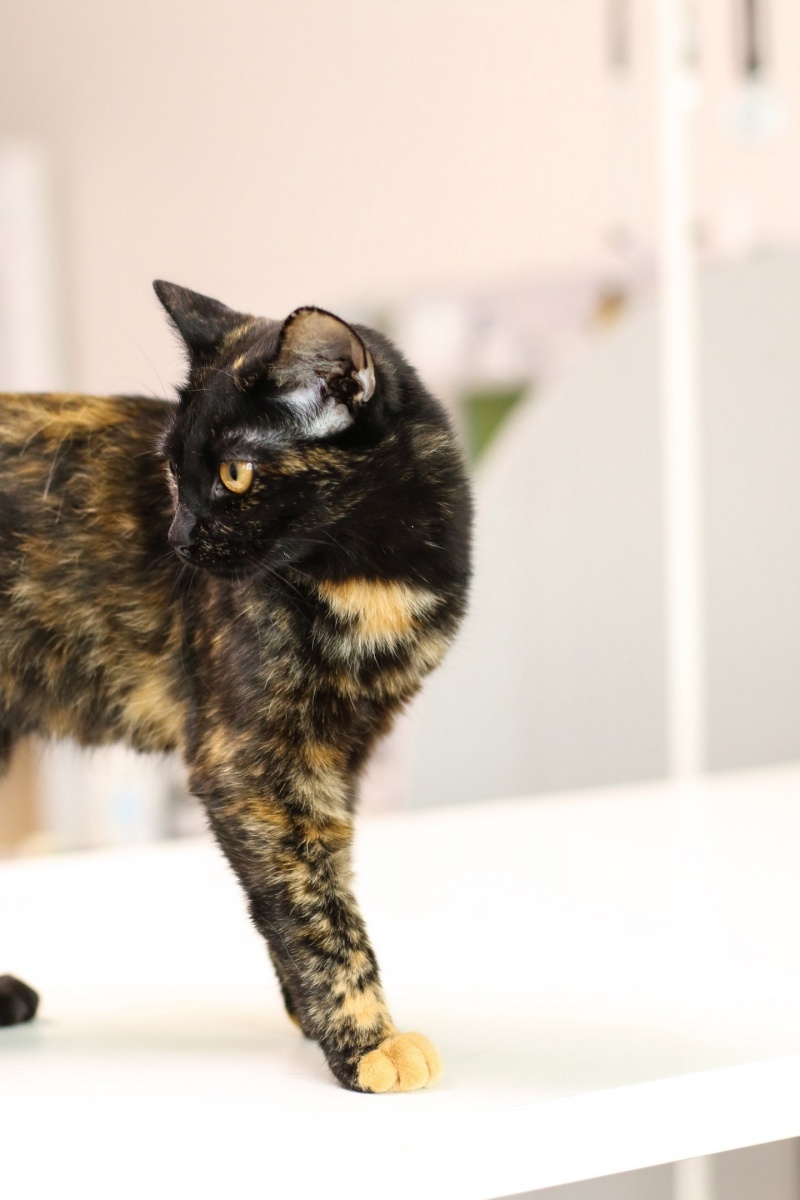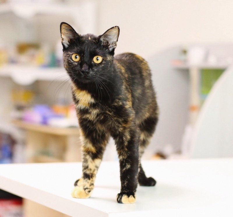Вот такая замечательная девочка черепахового окраса ищет заботливых и ответственных хозяев! Готова стать Вашей верной подружкой, радостью для души и украшением для дома. Оливка еще кошечка-подросток – ей всего 10 месяцев. Отличается беспроблемным и человекоориентированным характером, очень ласковая, добрая и покладистая. Стерилизована, приучена к лотку и когтеточке. Кушает как кошачьи корма, так и натуральную пищу.
