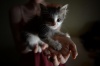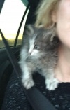 Вчера поздно вечером подняли котёнка на колыванской трассе, шел прямо по дороге вдали от деревень. Привезли в Новосибирск.
