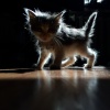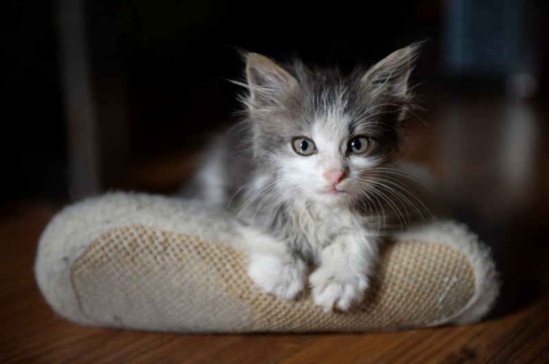 Пол мужской. Полтора месяца. Ночью же отвезли к ветеринару на Нарымской. Лишая и блох нет. Помыли. Поставили витамины. Кормят. Очень худой. Вес 400 гр. Пушистый. Усатый. Географически находится в районе Вокзала Главного. До 5 вечера сами можем привезти по дороге из города.