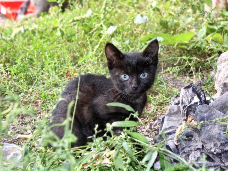 Наоми - игривая черная красавица. Неутомимый исследователь: залезает во все уголки, проверяет цветочные горшки, бегает и прыгает с домашней собачкой и кошкой) После чего, найдя титю у последней, сладко засыпает под её бочком, чтобы набраться сил к следующему заходу))