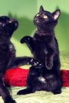Брат и сестра Джозеф и Магда больше всего похожи на двух ярких красивейших пантер) Это самые настоящие "дикие" кошки, которые часто представляют, что живут в джунглях: бегают друг за дружкой, взбираются по лианам и охотятся на свои хвостики, бантики, мячики и прочую импровизированную "добычу")) Возраст около 2 месяцев, полностью здоровы, что подтверждено анализами на все возможные инфекции. Обработаны от паразитов. Это очень ласковые детки (когда не бесятся) На ручках тарахтят, прижимаются и кайфуют). Магда (Мади) более ласковая, приходит спать в обнимку. Джозеф (Йося), как настоящий мужчина, реже позволяет себе такие слабости) Йося побольше сестры, мордочка более вытянутая, ушки крупнее, небольшой белый галстучек на воротнике и магические зелёные глазки. Магда более миниатюрная, мордочка круглая, имеет белые трусишки, глазки жёлтые.