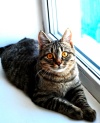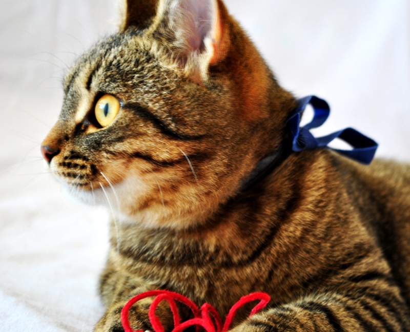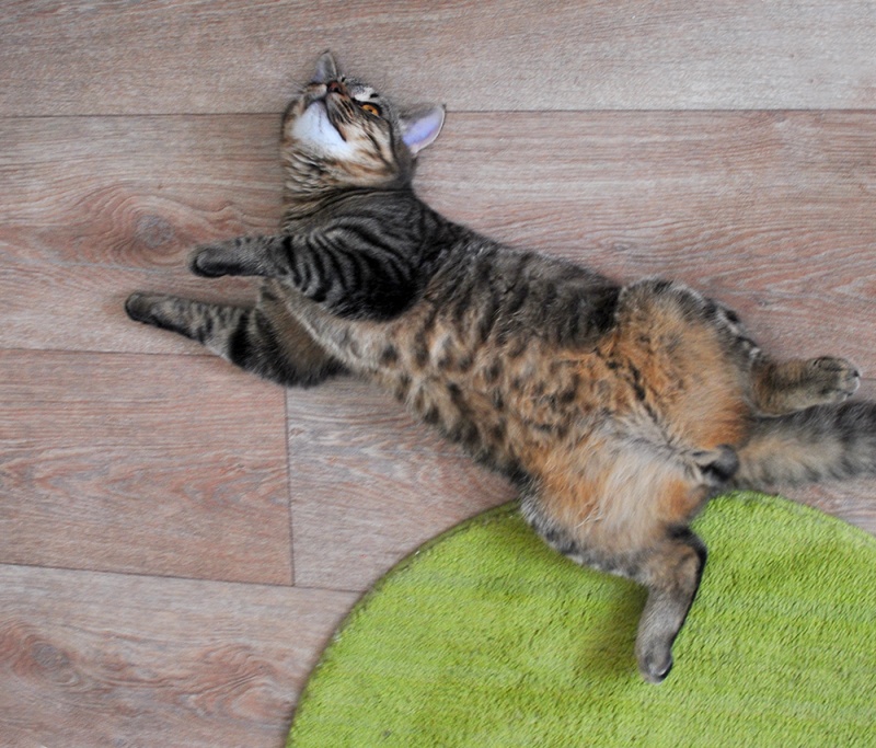 "Тихо ступаю мягкими лапками(с чёрненькими подушечками, прошу заметить). Любопытно... Обнюхиваю все необычное, проверяю, всё ли в порядке. Ах, вот и человек, который меня кормит. Надо проявить ласку, помурчать, потереться боком - вдруг в следующий раз побольше влажника достанется. Что это такое передо мной мелькает? Уже махаю лапками, конечно же не выпуская когтей... "