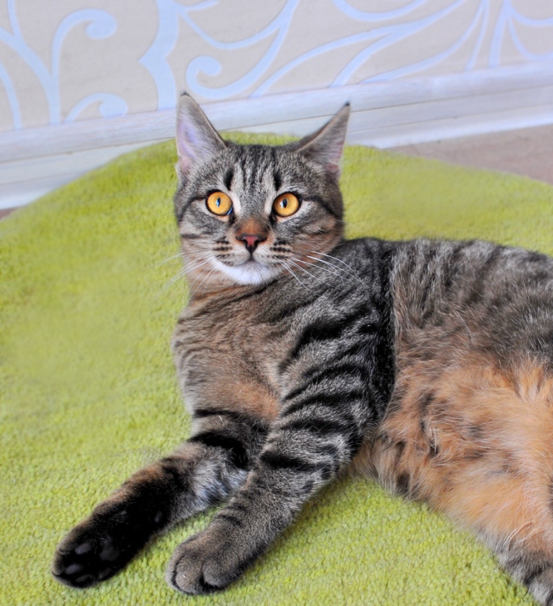 Рысик - мальчик, 5 месяцев, поэтому характер уже вполне понятен. Абсолютно уравновешенный, неконфликтный с другими животными, но может постоять за себя шипением и выгибанием спинки. Обожает людей, очень общительный, стрессоустойчивый котик. Тарахтит громко и крайне редко мяукает. Точит когти только о когтеточку, лоток на 5+. Очччень игривый. И такой весь приятный, гладенький, ладненький. Кот классный! В общем, если о таком котике мечтали, звоните.