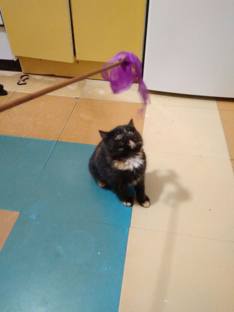 Красивая маленькая девочка, возраст всего 3 месяца очень хочет найти свой дом. Котенок очень красивого окраса трех цветов. Умная, смелая, игривая девочка. Кушает хорошо и все подряд, ходит на лоточек. Прошла обследование у ветеринара, здорова.