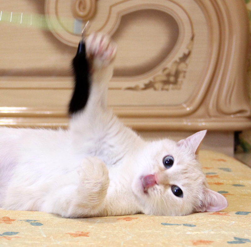 Кассиопея невероятно ласковая и общительная, если на неё не обращать внимание, она подходит и нежно трогает лапкой за руку, заглядывая в глаза. А ещё она очень тихонечко мурлыкает или что-то рассказывает.