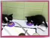 Причуда помладше, ей 2 мес (черное, ушастое чудо), Забаве 2.5 (черно-белая зайка). Обе приучены к лоточку, питаются РК для котят.