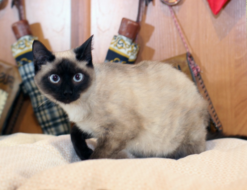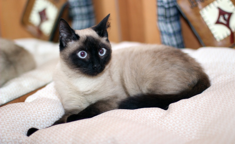Воспитанный молодой голубоглазый котик тайского окарса ищет дом.