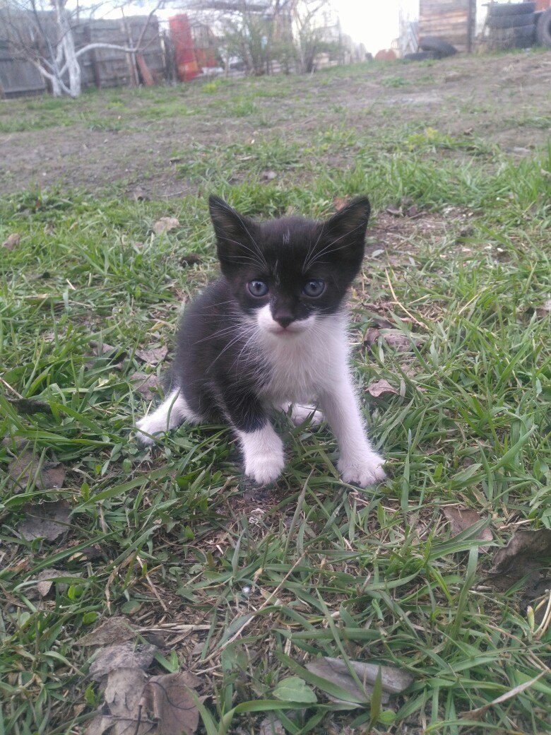 Я помогаю знакомой пристроить трех замечательных котят. Дымчатая — девочка, два черно-белых — мальчики. Дымчатая девочка и один черно-белый котенок родились примерно 8 апреля, а еще один котенок — на неделю-полторы позже.