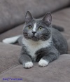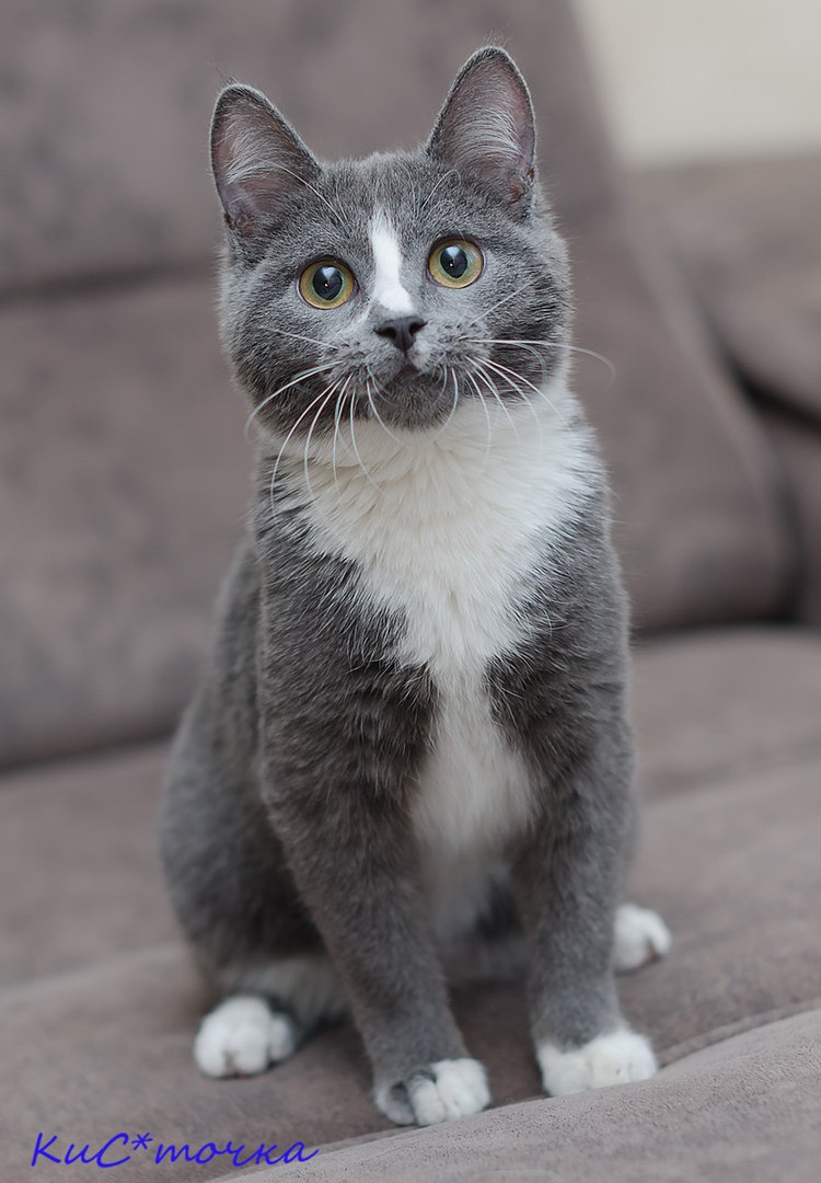 Озорной ребятенок, мяконький, добрый, наивный и такой тискательный и очаровательный, что невозможно взглянуть на него без улыбки) Возраст около полугода. Здоровенький и уверенный в себе подросток. Обладатель интересного гармоничного окраса "голубой маркиз", с зелеными глазками, симпатичными аккуратными ушками и фирменной уникальной белой полосочкой на носу)