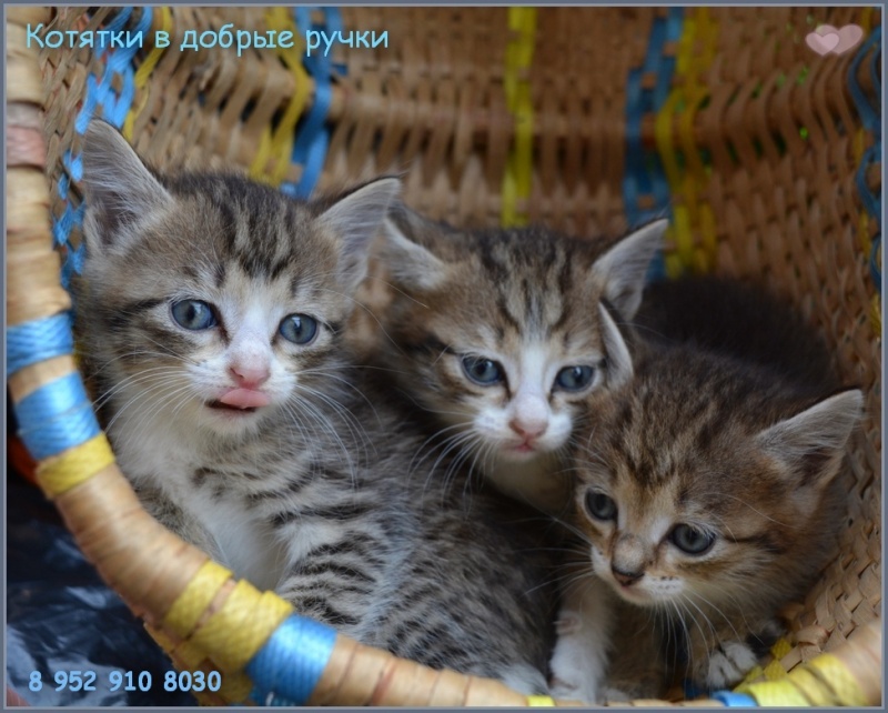 Котятки возрастом около 2х месяцев, два мальчика и девочка. Кушают сами, в лоточек стараются попадать