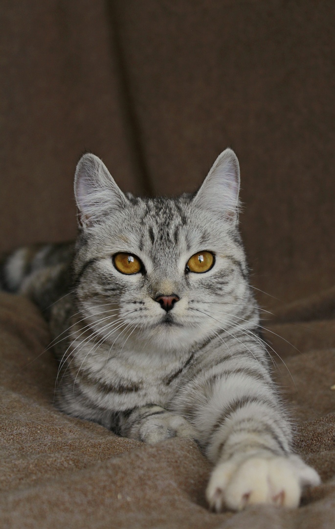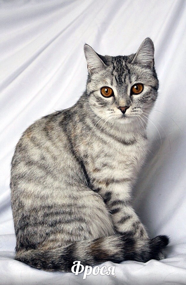 Кошечке Фросе около 2х лет. Она настоящая модница: её серебристая шубка окраса табби очень мягкая и красивая. А этот завораживающий взгляд огромных золотистых с подводкой глаз кого угодно сведет с ума! Кото-девочка очень ласковая, игривая и любопытная, как и все усато-полосатые. Она любит общаться и сидеть на ручках, мурлыкая свои песенки. Имя Фрося (Ефросинья) греческое и означает «радость».