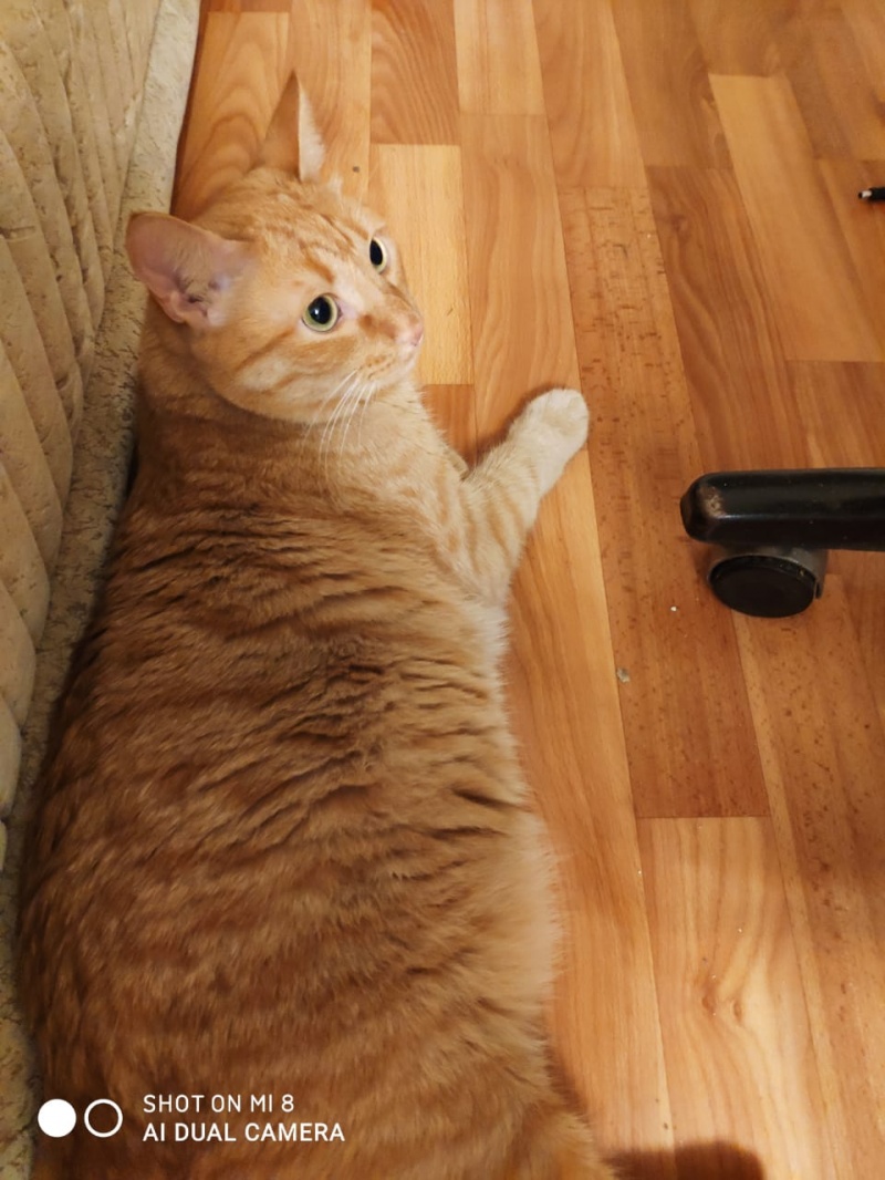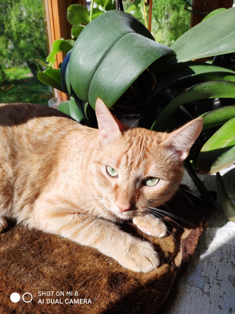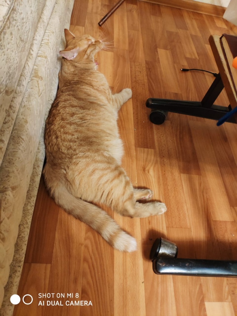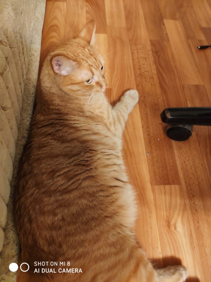Дома прошел все процедуры, немножко обвыкся, осмотрелся, стал доверять людям, которые ухаживают и кормят, но к чужим с осторожностью, но на руках сразу мурлыкает.