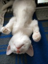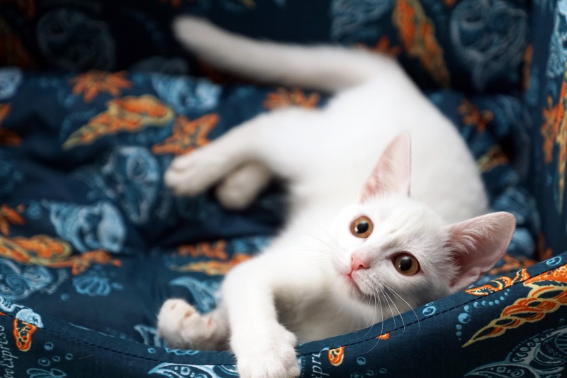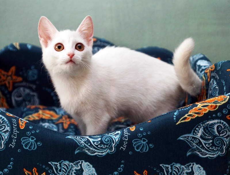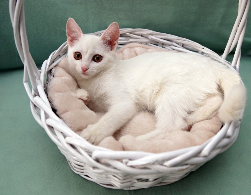 Она самая спокойная по сравнению с другими братиками и сестричками, нежная, хрупкая, ласковая. Играет игрушками, принимает участие в совместных играх и ничем не уступает остальным котятам. Аккуратная и прилежная девочка, все ее любят и жалеют.