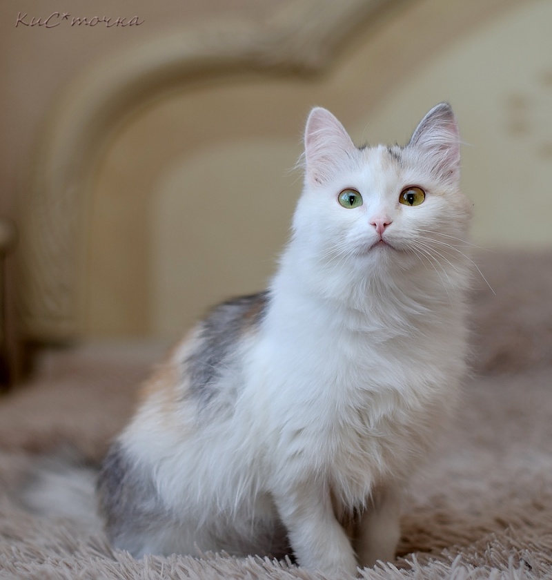 Красавица Анжелика очень ждет свою мамочку- хозяйку. Ей 8 месяцев. Стерилизована. Лоточек с первого дня на отлично. Кушает наша принцесса Роял канин сухой и разные влажнички. Девочка умненькая, очень ласковая, с обалденной энергетикой нежности и гармонии. НО когда этот ангелочек разыграется- все остальные кошки прячутся))))). Летает по дому как ракета, сует моську в сапоги и катается в них по полу. Туалетную бумагу прячем! Потому что она вызывает у нее бурный восторг и тут же разматывается до основания! Все шнуры, пояса и прочие веревочки убираем подальше. Анжелка уверена, что это все придумано и куплено для нее! Она нуждается во внимании, большом количестве игрушек и пространстве для подвижных игр. В целом она золотой ребенок! Ведь это и не недостатки вовсе для молоденькой кошечки, ведь правда?! От прошлой не счастливой жизни у Анжелики остались последствия в виде сломанного зуба и травмы глазика. Но на сегодня она прекрасно себя чувствует.