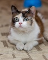Четырёхцветная голубоглазая шалунья. Всё бы ей играть да веселиться! На полочке стоит корзинка с игрушками для кошек. Тася это знает, постоянно проверяет корзинку, вдруг там появились новые игрушки. Их нужно срочно достать и начать играть. Иначе для чего ж их туда положили?