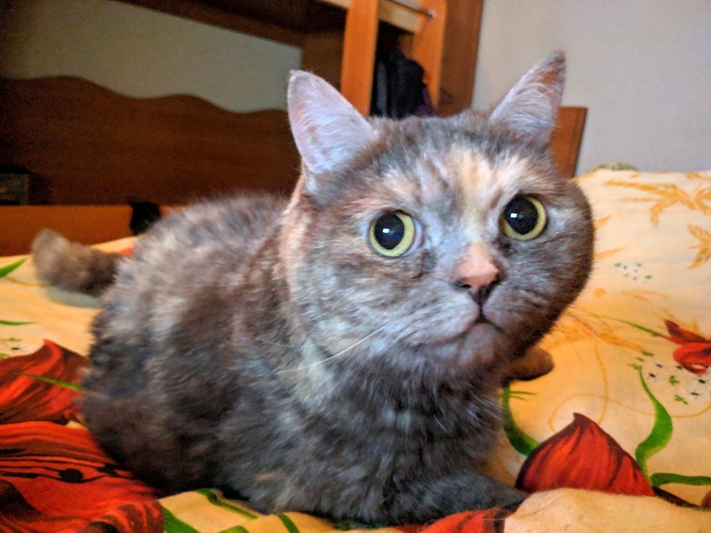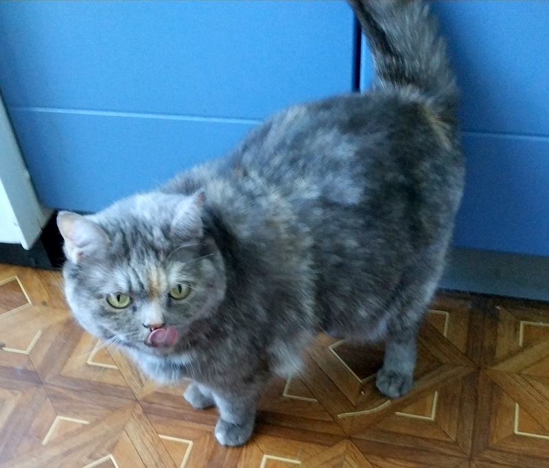 Её нельзя брать в руки, поскольку её тушка-кабачок неприкосновенна. Гладить только по голове, и только тогда когда она хочет. Иногда может снизойти до мур-мур и поласкушек с подставлением щёчек.