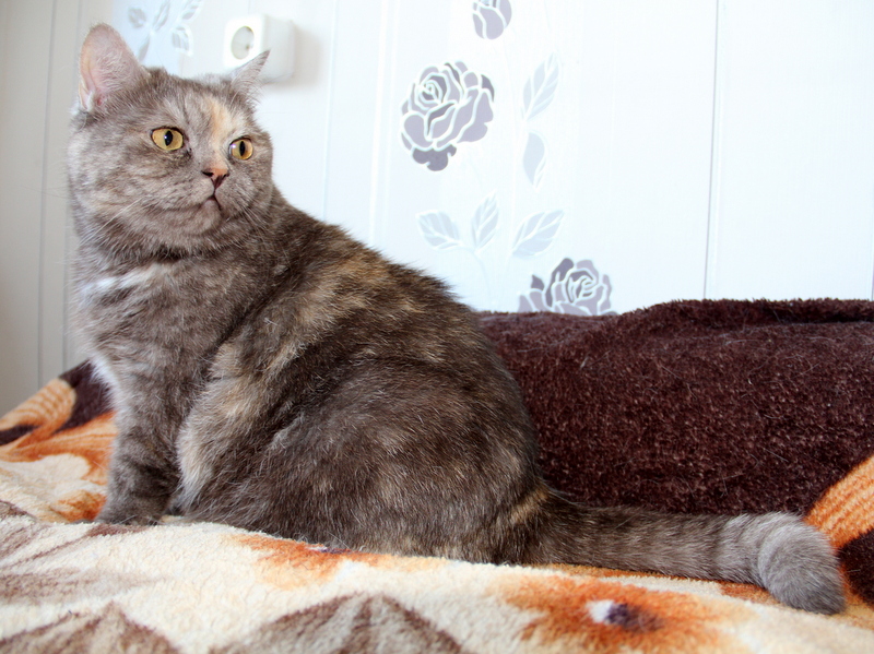 Ходит в лоток, желательно большой, т.к. в маленький не помещаются её роскошные формы.