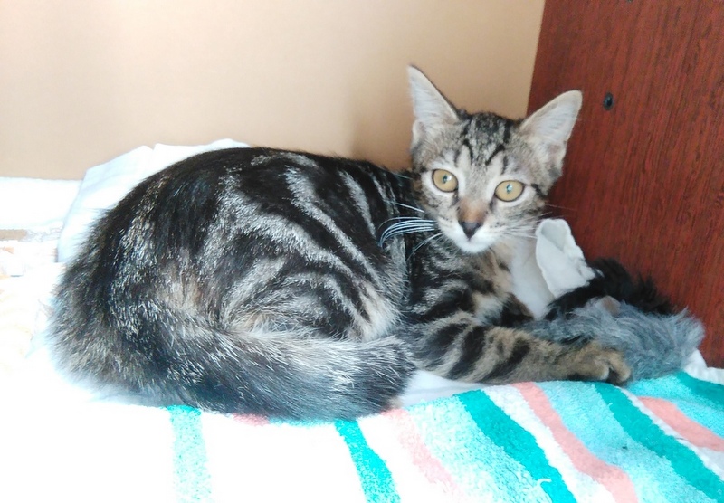 Тося-темная, мраморная, яркая девчушка! С характером, ещё немного робкая и скромная, но на ручках-любит поластиться и погладиться.