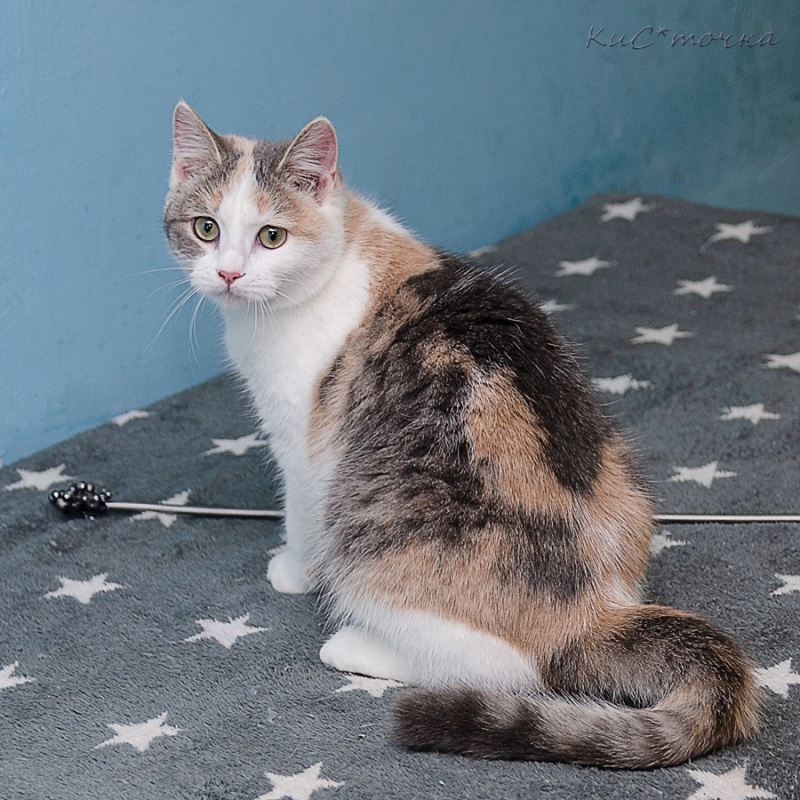Ей около 6 месяцев. По достижению взрослого возраста кошечку необходимо стерилизовать (проконсультируем, где и как).