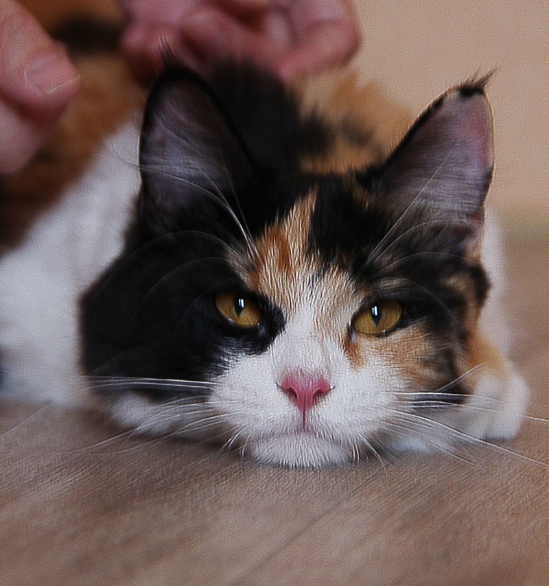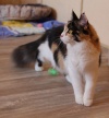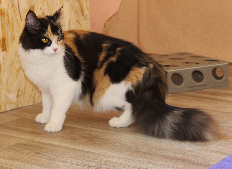 Майра общительная, ласкучая кошка. Любопытная очень! Если увидит сумку, проверит, что там, любую новую вещь изучит, потрогает лапкой.