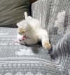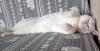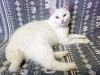 Кошка очень красивая, с большими медовыми глазами, в белоснежной шубке, хвост крючком.