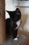 Девочка, возраст примерно 1.5-2 месяца. Характер спокойный и ласковый, к лотку приучена.