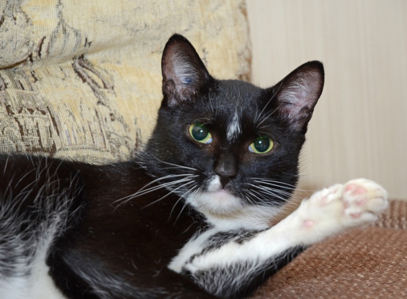 Посмотрите, как он принарядился: шикарная шуба, белоснежная манишка, белые перчатки . А глаза...смотрят прямо в вашу душу.