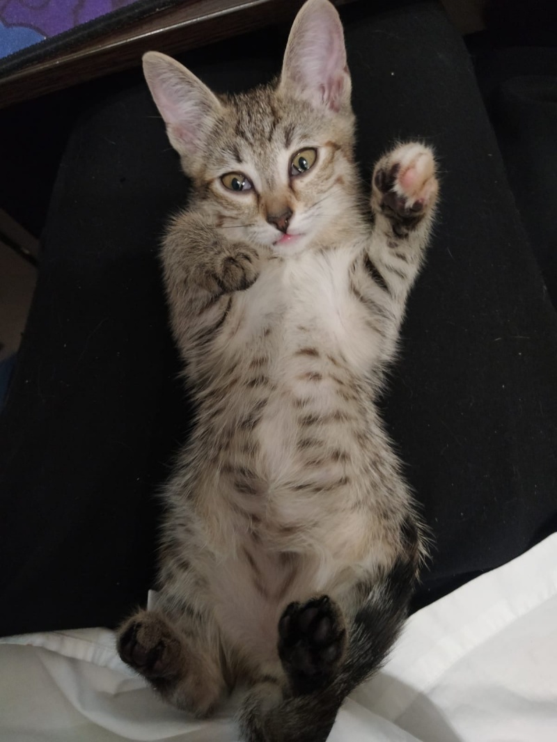 Малышкам 1,5 месяца, учатся ходить в лоточек. И очень-очень ждут, когда за ними придут и заберут домой, где их будут любить, баловать и вкусно кормить, где им купят много игрушек и можно бегать и играть, а не сидеть в тесной клетке.