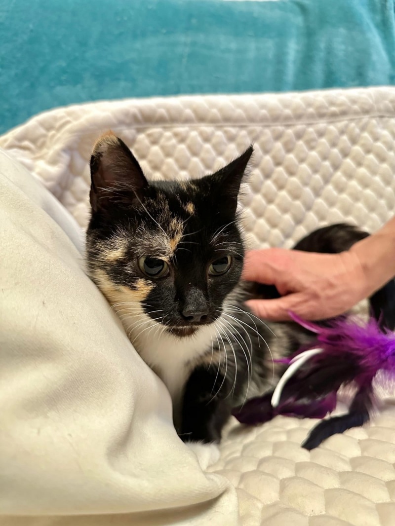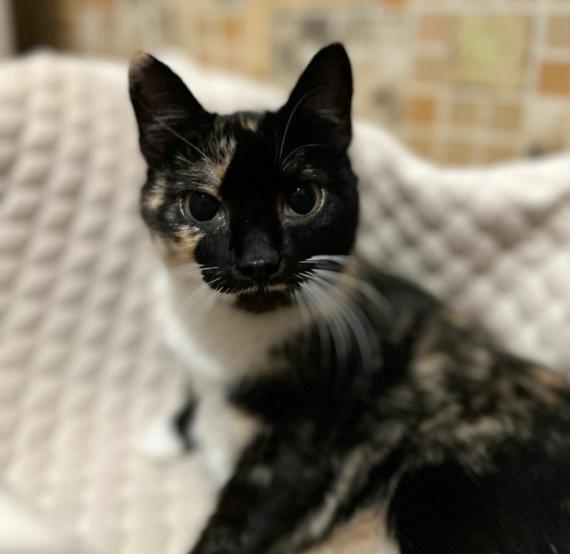 Мотю нашли на улице, она была очень напуганной, худой и несчастной.