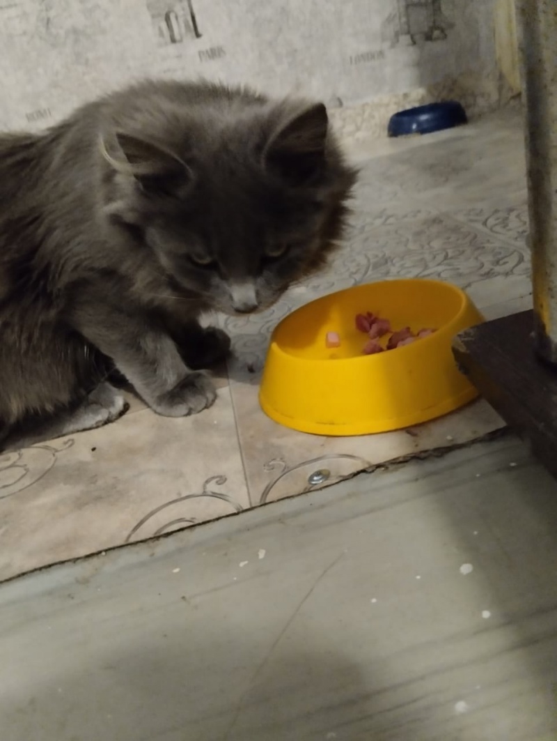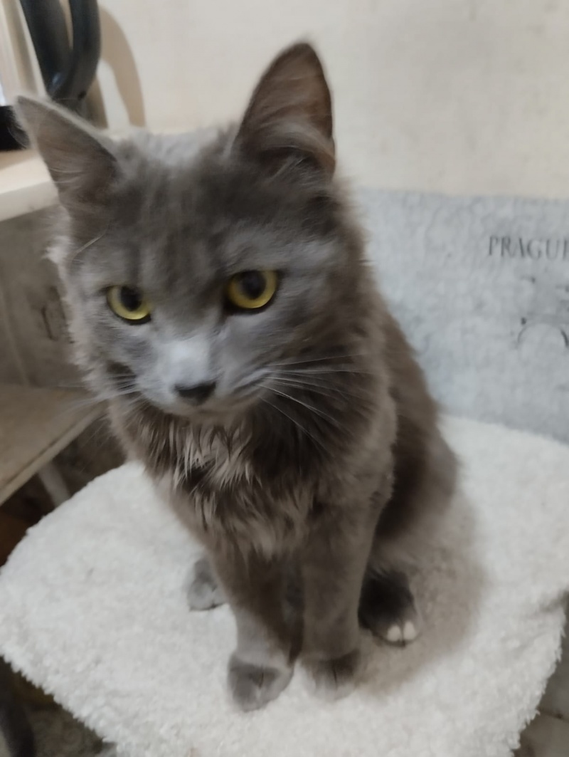 Ему около 7-8 месяцев, пока не кастрирован (окажем содействие или кастрируем перед отдачей), ходит в лоток.