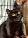 Кошка невероятно красивая, шикарная, холёная шубка цвета чёрный бриллиант, огромные апельсиновые глаза и робкое, но очень доброе сердечко.