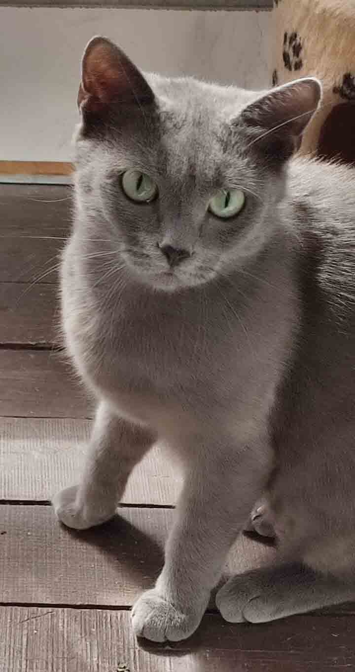 Эту красавицу с грустными зелёными глазами зовут простым русским именем Муся. Муся очень похожа на породу русская голубая, элегантная, с чувством собственного достоинства, но дружелюбная и простоя в общении, как все русские)
