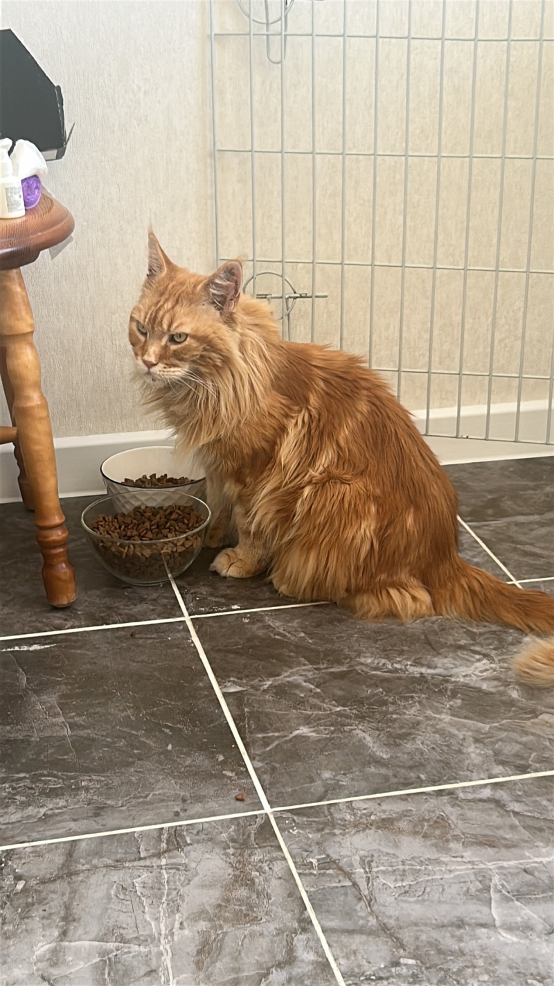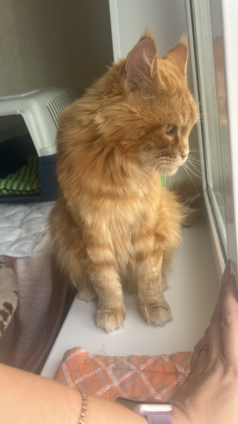 Эта красивая кошка породы мейн кун прибилась к пожилой женщине которая её подкармливали.