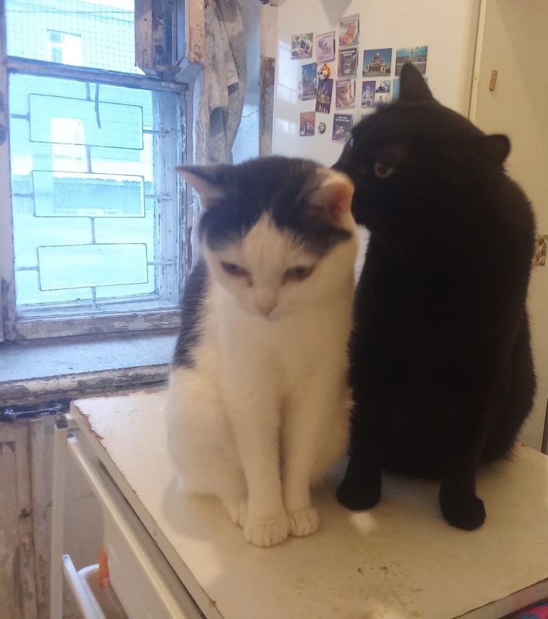 У Уголька были проблемы с мочевой системой, вероятно, на фоне стресса, попав в нормальные условия, здоровье наладилось. Милка тоже повеселела, избавившись от своих больших назойливых котят.