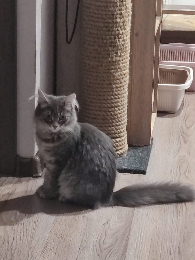 В августе отловлена с подвала жилого дома, сейчас привыкает к домашней обстановке . Девочка игривая, ласковая, без агрессии. С другими кошками ладит хорошо. В руки пока сама не подходит, держится на расстоянии, но терпение и любовь сделает своё дело, прошло пока совсем немного времени.