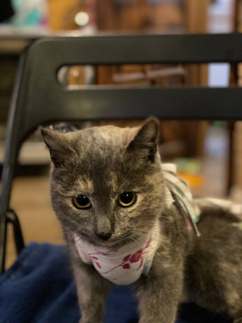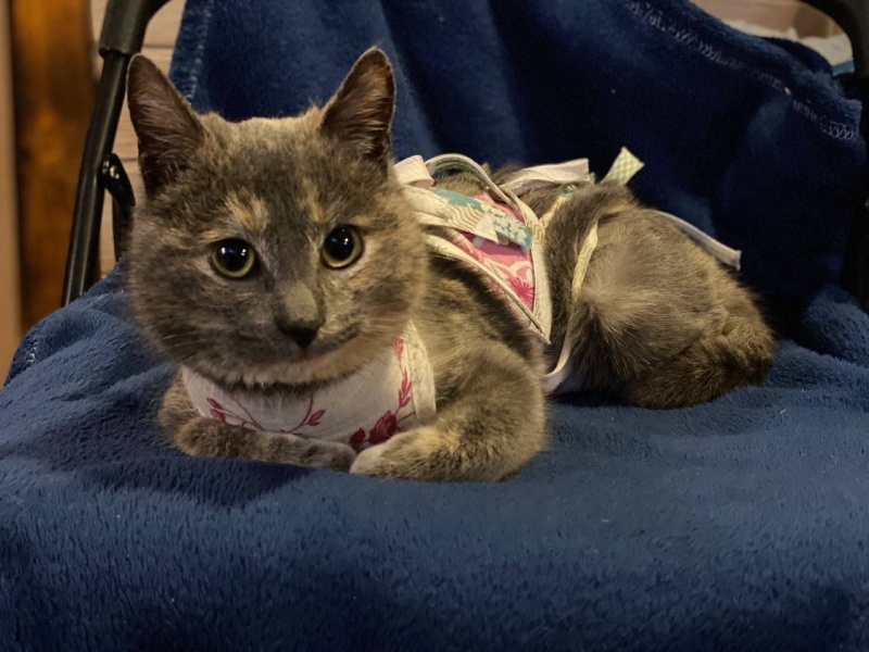 Эта крошечная кошечка, которой всего полгода, чудом выжила в лютый мороз, прибившись к одной из дач.
