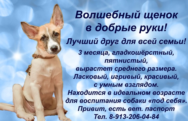 Он сразу напомнил мне забавного щенка из детской книжки Н.Носова. По крайней мере, того Дружка из рассказа, я представляла именно таким. Весёлый и игривый ребёнок. Ему около 2,5 мес. Обработан Стронгхолдом.Если вам понравился Дружок, звоните 8-913-206-04-84