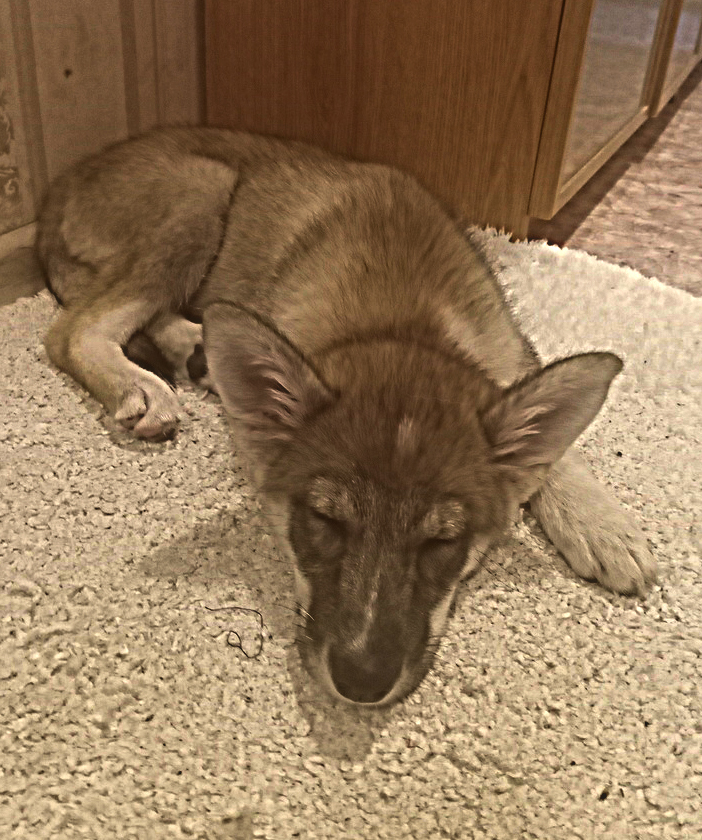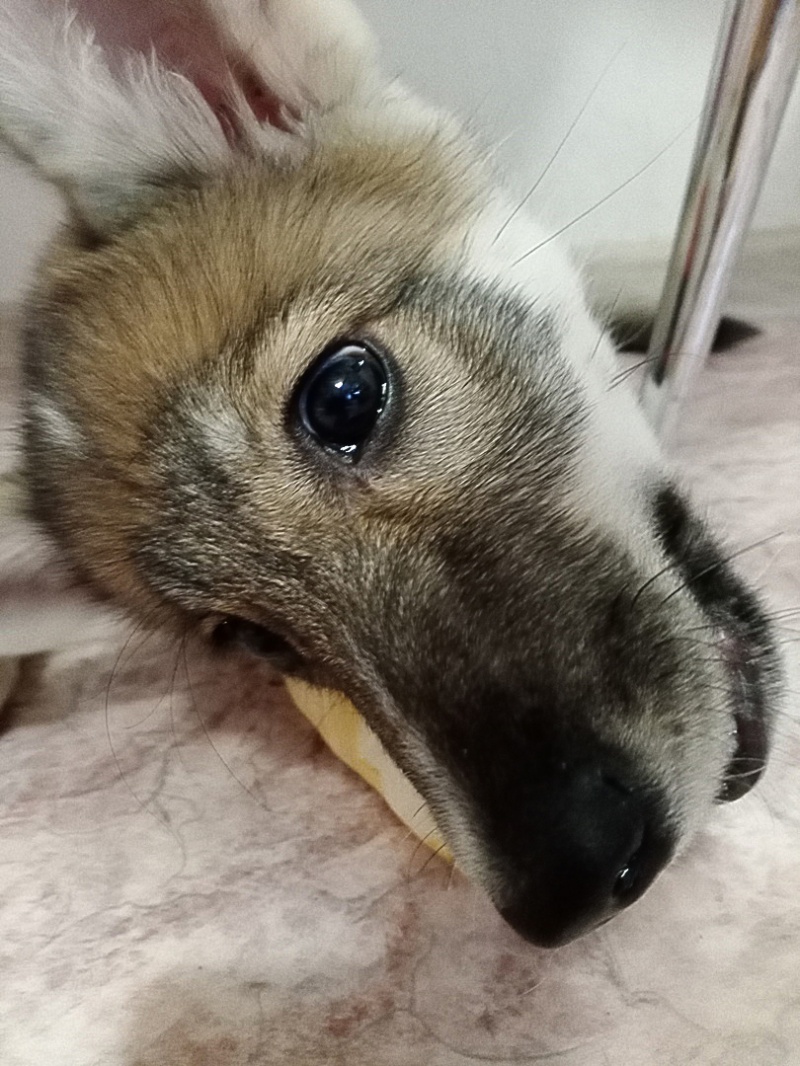 Милейшая девчула, фенотип хаски, зовут Тося. Хоть Тося совсем ещё крошка, но уже знает команды "сидеть" и "ко мне", умеет гордо вышагивать на поводке и учится терпеть до выгула.
